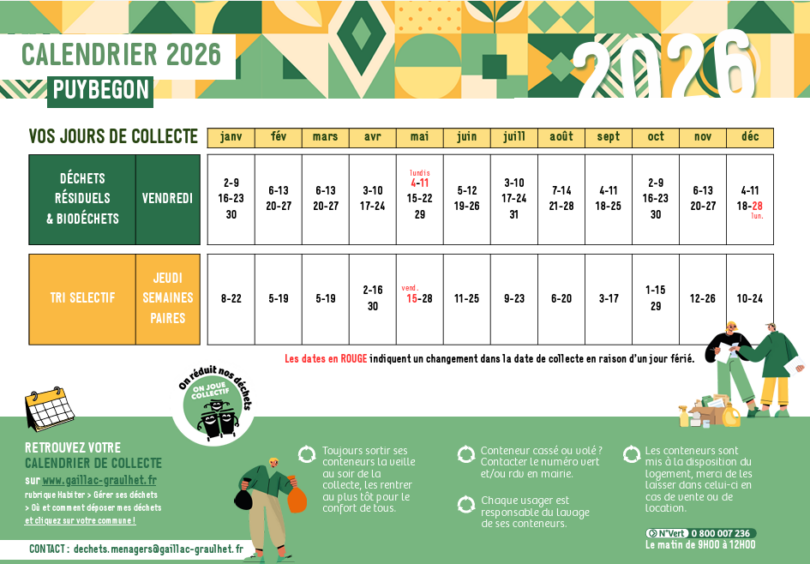 Certains administrés de la commune ont un jour de collecte différent, vous pouvez consulter votre calendrier sur le lien suivant (sélectionner la commune dont vous dépendez : Briatexte ou Busque) :